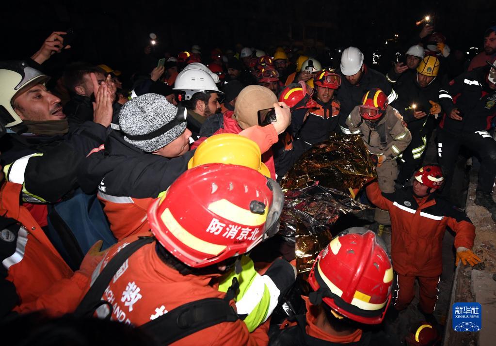 在土耳其南部地震重災區哈塔伊省安塔基亞市,中國救援隊9日晚同土耳其救援隊合作,又救出一名被埋在樓房廢墟下的女性幸存者。