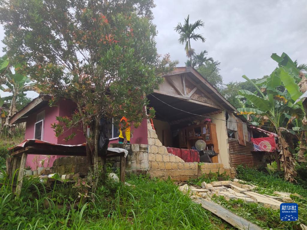 這是2月9日在印度尼西亞查亞普拉拍攝的在地震中損毀的房屋。