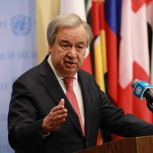 2月9日,在位于紐約的聯合國總部,聯合國秘書長古特雷斯發表講話。