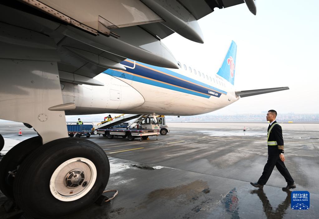 馬保利在航班起飛前繞機巡檢(2月4日攝)。