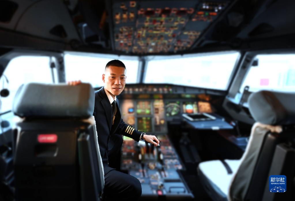 馬保利在飛機駕駛艙內(2月4日攝)(駕駛艙進行了虛化處理)。