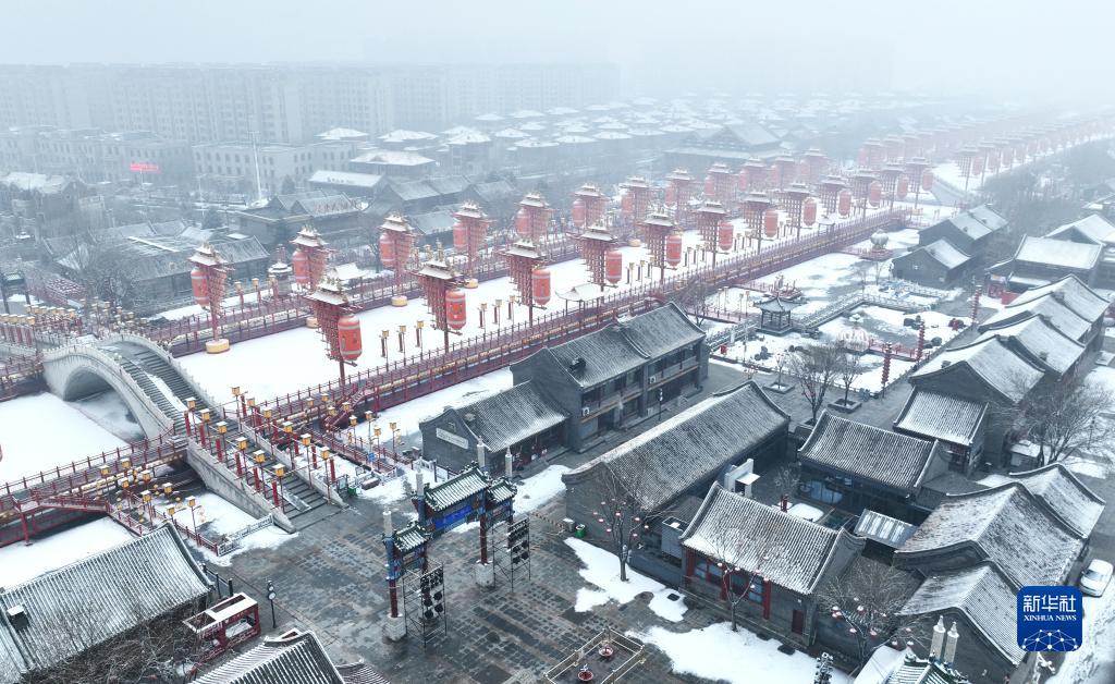 雪后的唐山市豐南區河頭老街景色(2月10日攝,無人機照片)。