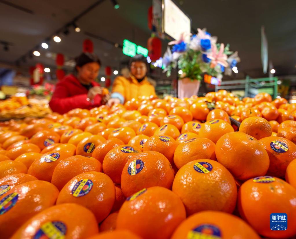 2月10日,顧客在貴州省玉屏侗族自治縣一家超市選購水果。