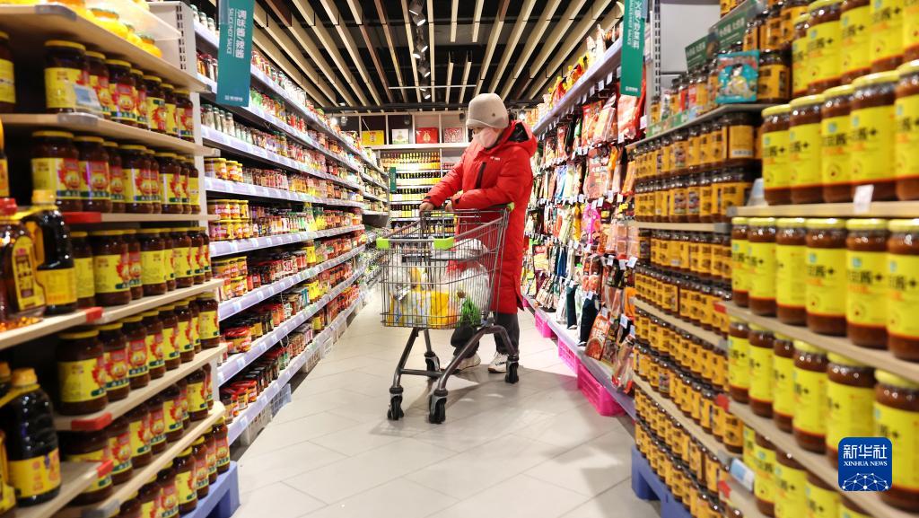2月10日,在江蘇省連云港市海州區一家超市,市民在選購商品。
