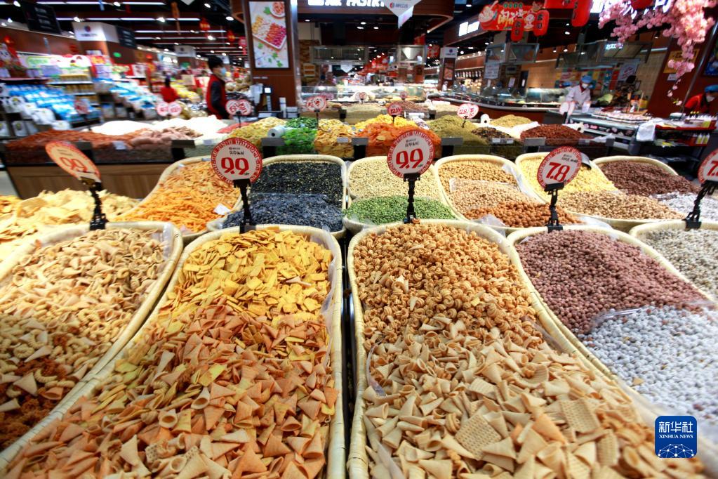 2月10日,顧客在山東省臨沂市平邑縣一家超市選購物品。