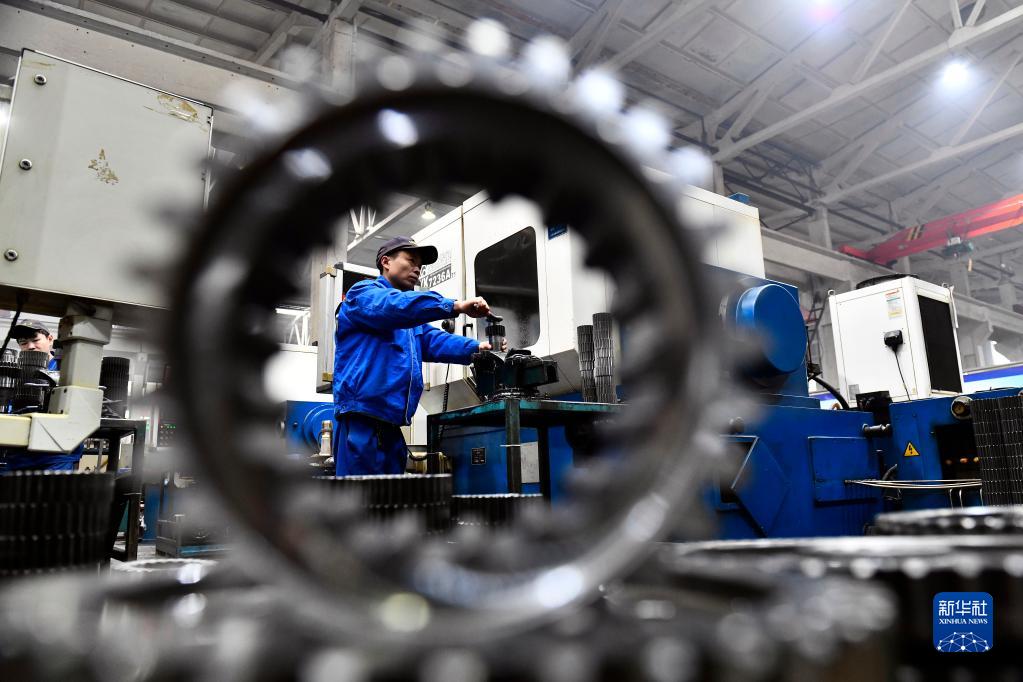 2月10日,一企業工作人員在加工變速箱齒輪。
