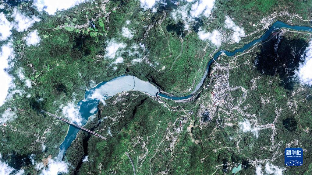 2022年8月1日衛星拍攝的貴州鴨池河大橋。