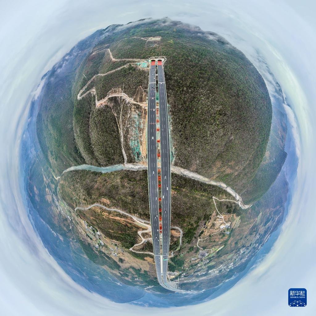 從衛星的視角向下俯瞰,高橋宛如紐帶,跨越深邃的峽谷、溝壑,將縱橫的群山緊密相連。從穿越機視角向前“飛越”,我們仿佛以飛鳥的視角穿越貴州的百萬大山,與山海相連。