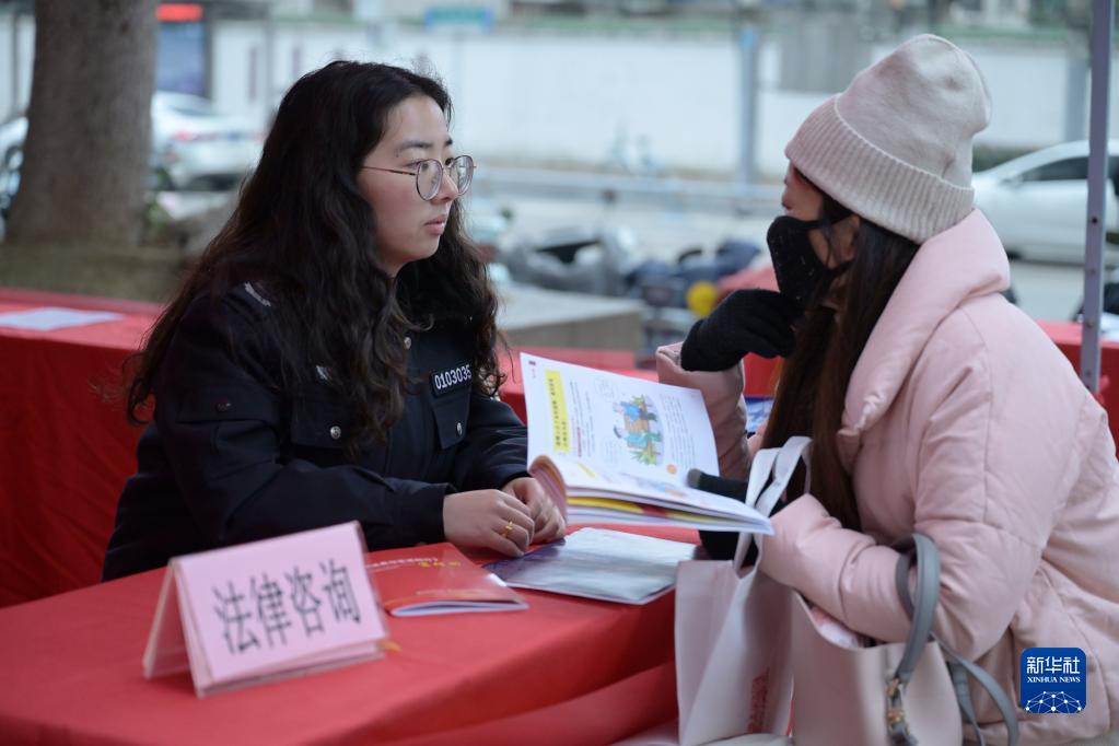2月10日,在合肥市蜀山區環球金融廣場舉行的招聘會上,工作人員(左)為求職者提供法律咨詢。