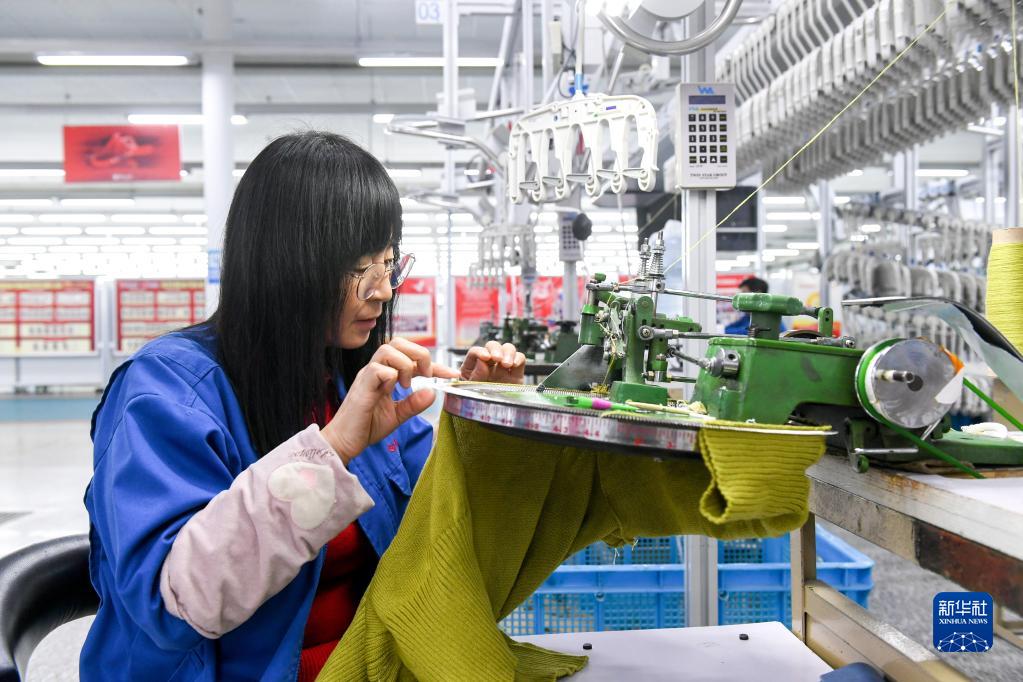 2月9日,工人在鄂爾多斯羊絨集團有限責任公司編織車間內作業。