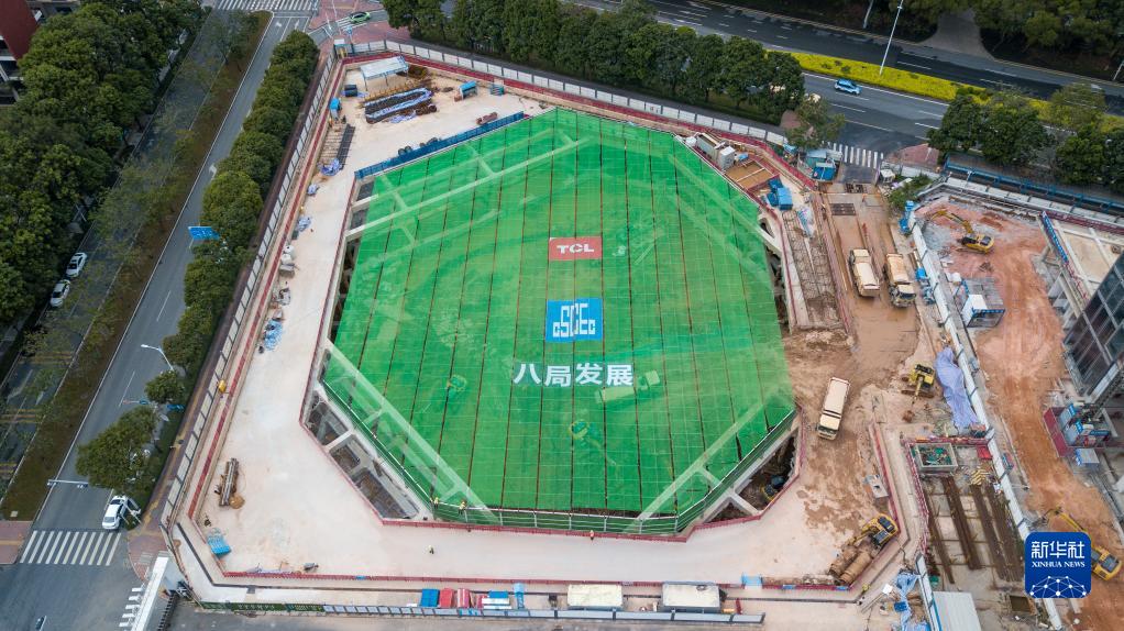 2月8日在TCL先進半導體顯示產業總部項目上拍攝的智能“天幕”(無人機照片)。