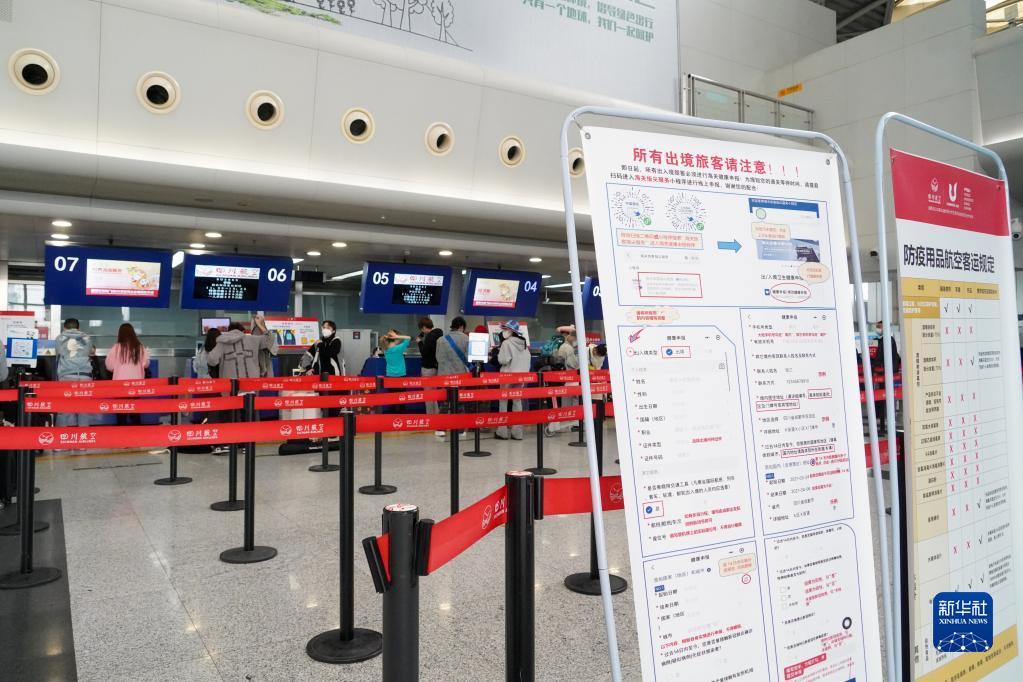 2月10日,在成都雙流國際機場T1航站樓,出境旅客在辦理登機手續。