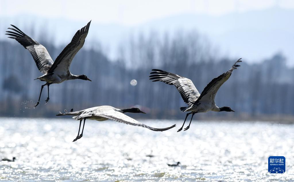 貴州草海國家級自然保護區是國家一級保護動物黑頸鶴的主要越冬地之一。近年來,當地加大對草海生態系統修復力度,大力實施“法制護湖、退城還湖、退村還湖、退耕還湖、治污凈湖、造林涵湖”六大工程,草海生態環境逐年變好,目前前來草海越冬的黑頸鶴達到2500余只,加上灰鶴、斑頭雁等,候鳥總數超10萬只,呈現萬鳥翔集的生態景觀。