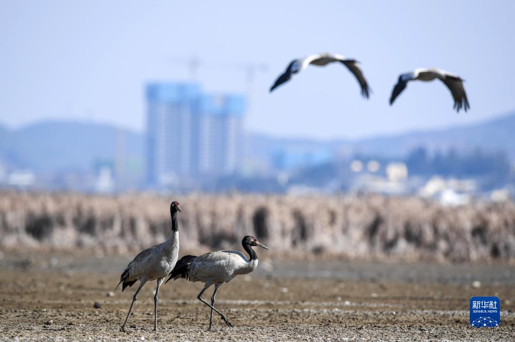貴州草海國家級自然保護區是國家一級保護動物黑頸鶴的主要越冬地之一。近年來,當地加大對草海生態系統修復力度,大力實施“法制護湖、退城還湖、退村還湖、退耕還湖、治污凈湖、造林涵湖”六大工程,草海生態環境逐年變好,目前前來草海越冬的黑頸鶴達到2500余只,加上灰鶴、斑頭雁等,候鳥總數超10萬只,呈現萬鳥翔集的生態景觀。