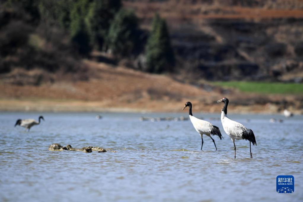 貴州草海國家級自然保護區是國家一級保護動物黑頸鶴的主要越冬地之一。近年來,當地加大對草海生態系統修復力度,大力實施“法制護湖、退城還湖、退村還湖、退耕還湖、治污凈湖、造林涵湖”六大工程,草海生態環境逐年變好,目前前來草海越冬的黑頸鶴達到2500余只,加上灰鶴、斑頭雁等,候鳥總數超10萬只,呈現萬鳥翔集的生態景觀。