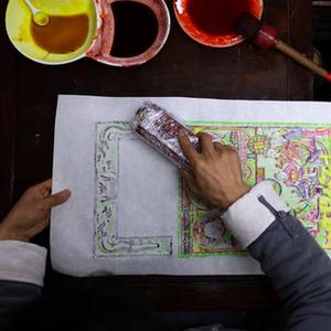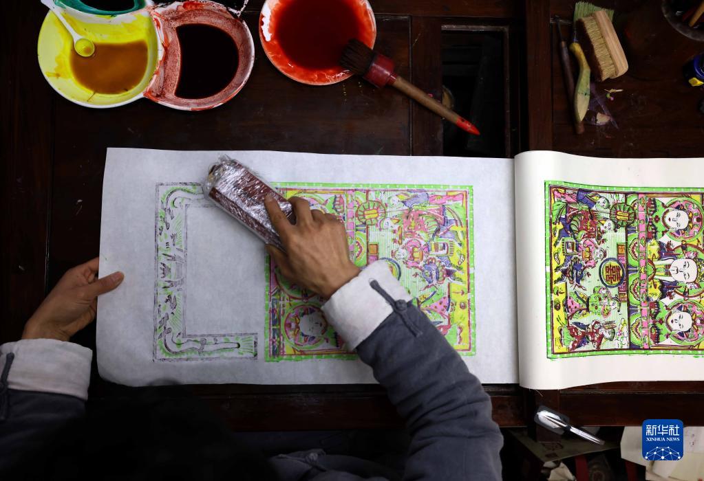 2月10日,在童壽記木版年畫工作室,童敏在印制年畫。