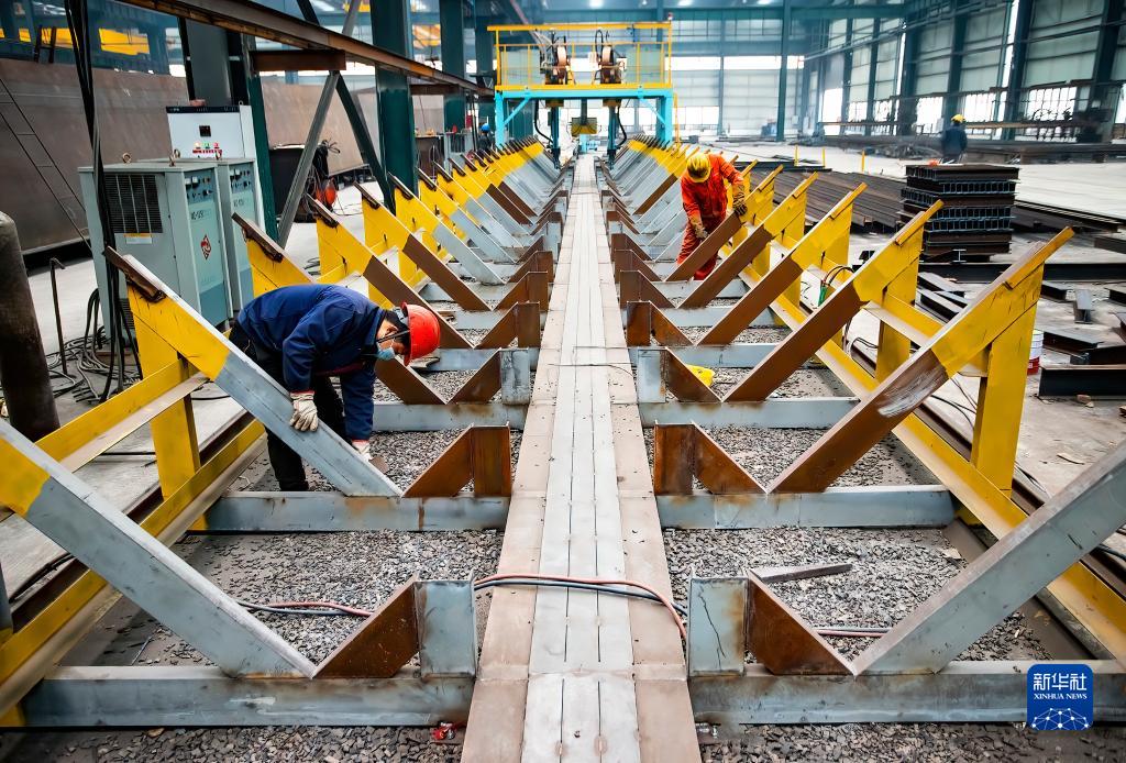 2月10日,工人在江西省九江市湖口縣高新技術產業園區內的橋梁構件生產廠區工作。