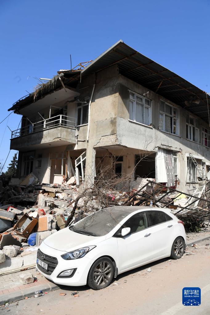這是2月10日在土耳其哈塔伊省安塔基亞市拍攝的遭地震損毀的建筑。