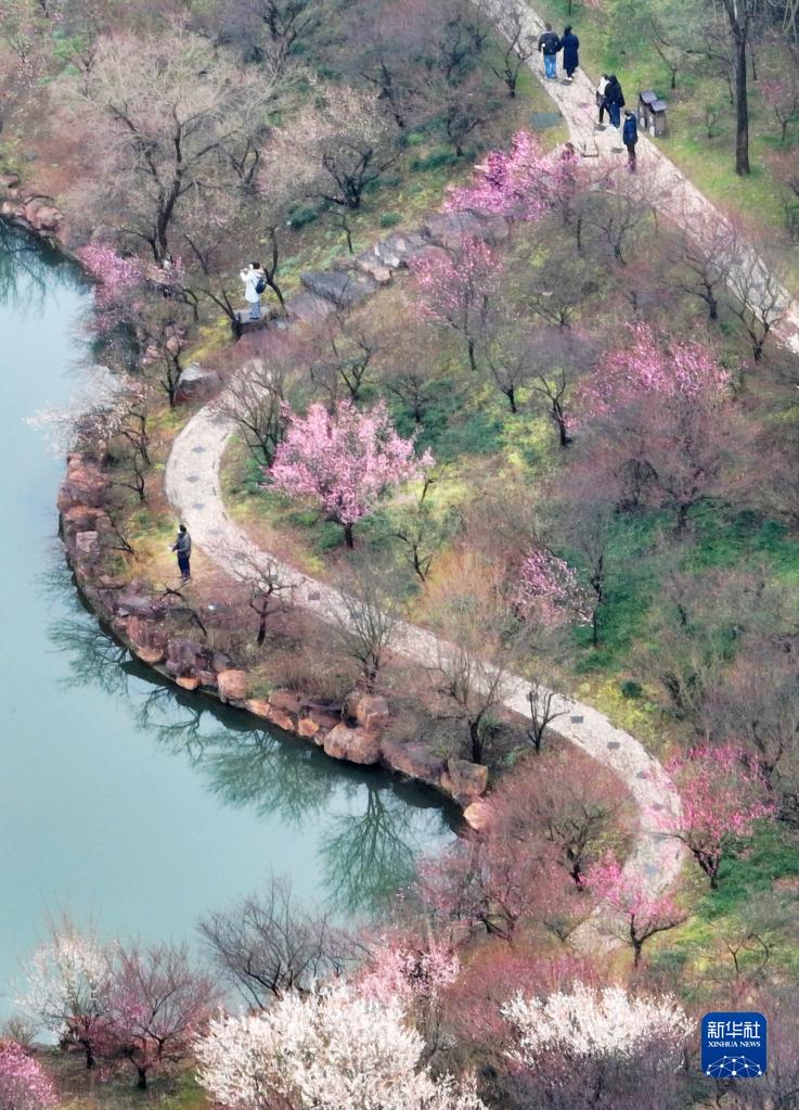 2月10日,游客在江蘇揚州瘦西湖風景區游玩(無人機照片)。