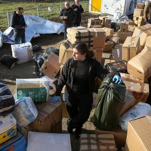2月9日,在英國倫敦,志愿者準備將人們向土耳其震區提供的援助物資裝車。