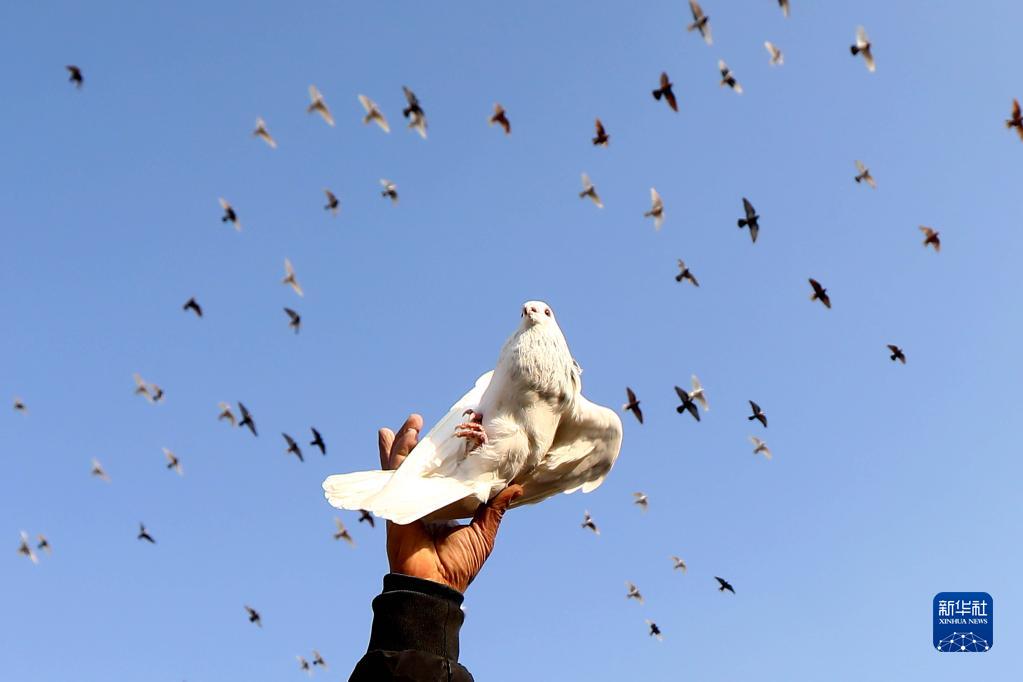 1月29日,在埃及開羅,一名養鴿人放飛他的鴿子。