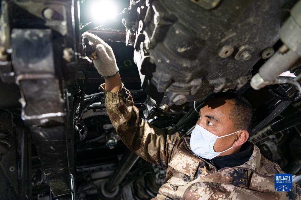 2月10日,在黑河市一車企檢測車間,工作人員對試驗車輛進行維修養護。