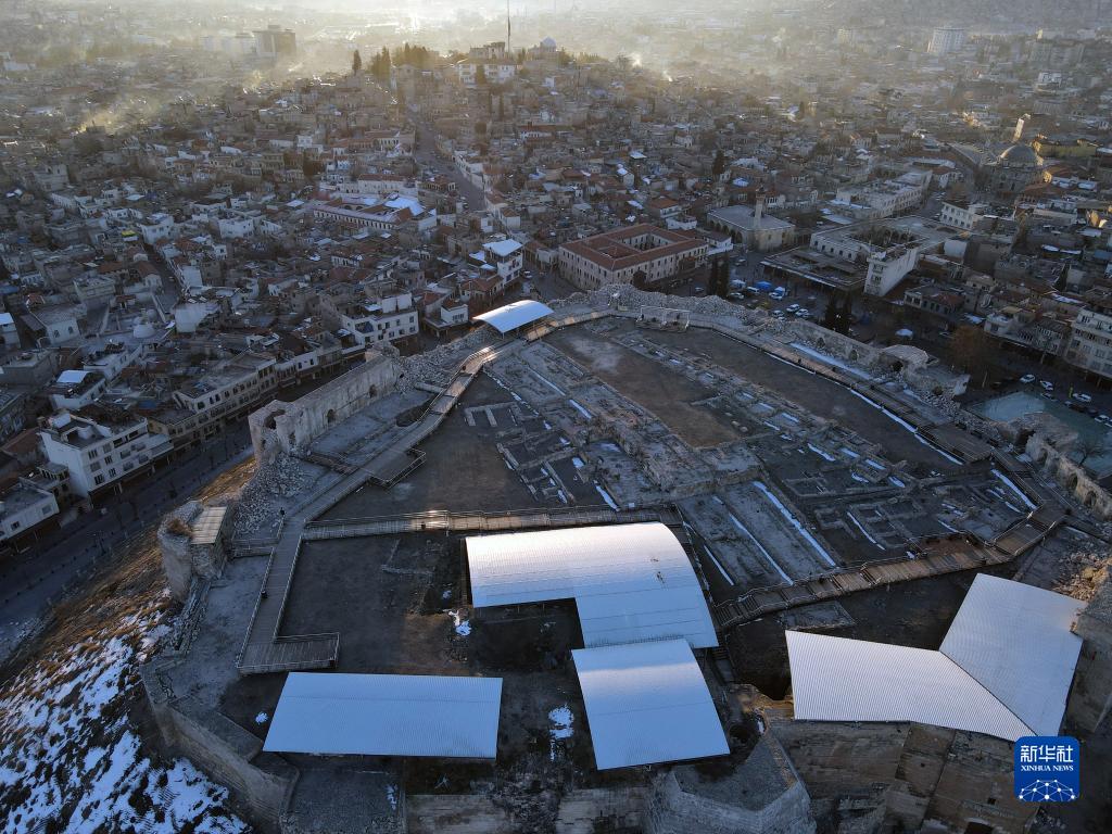 這是2月10日用無人機航拍的土耳其加濟安泰普古堡。