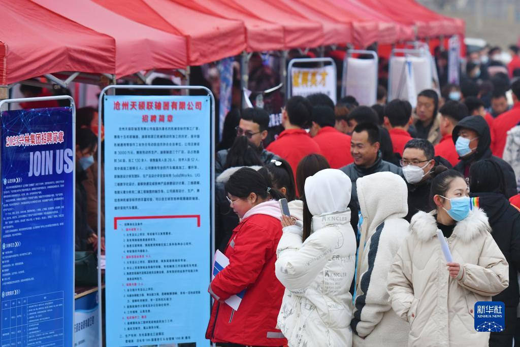 當日,河北滄州泊頭市舉辦“2023年‘春風行動’暨就業援助月”專場招聘會,上百家用人單位帶來約5000個涉及多個領域的工作崗位,吸引眾多求職者前來應聘。