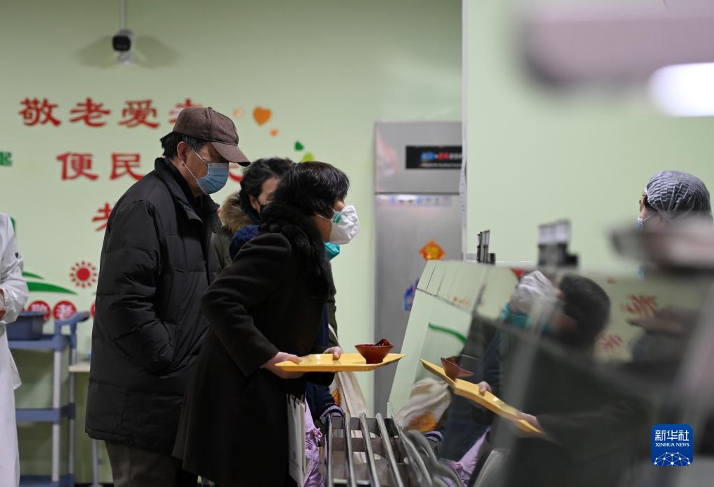 老人在天津市和平區南營門街道的老年人“智慧食堂”取餐(2月10日攝)。