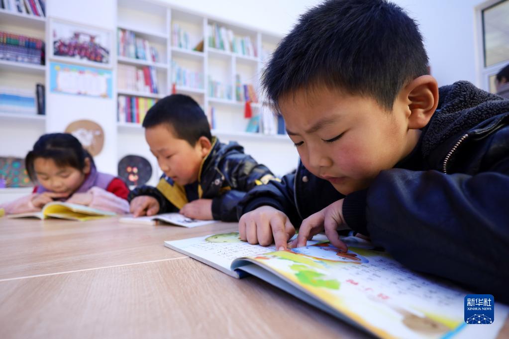 在隴南市徽縣虞關鄉許壩村“幸福家園”,小朋友在看書(2月11日攝)。