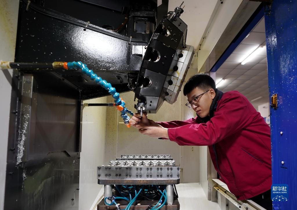 2月10日,工人在河北省唐山市海港經濟開發區一家紡織設備生產車間工作。