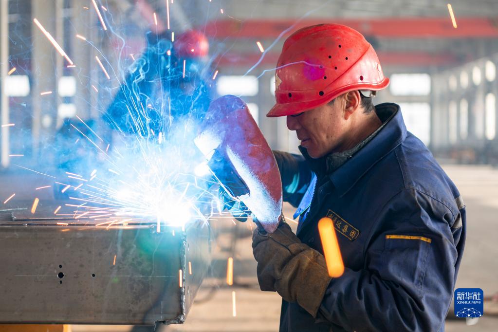 2月11日,在中國(黑龍江)自由貿易試驗區黑河片區,黑河市利源達專用車制造有限公司的工人在生產作業。