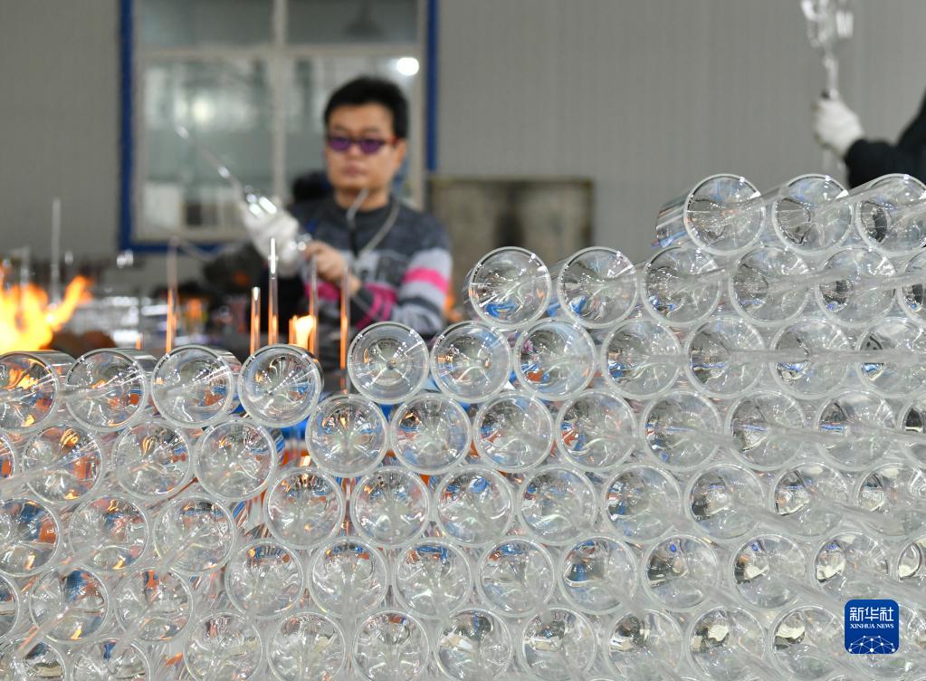 2月11日,河北省河間市一家工藝玻璃制品生產企業工人在車間內加工產品。