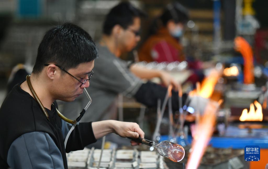 2月11日,河北省河間市一家工藝玻璃制品生產企業工人在車間內加工產品。