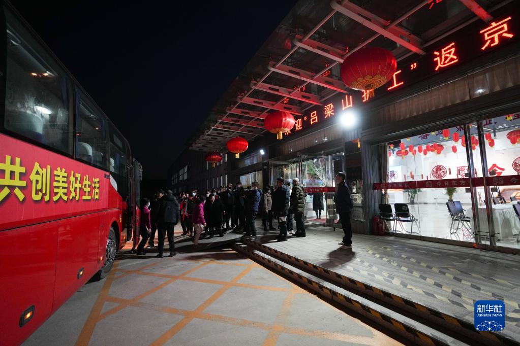 北京市“點對點”返崗復工專車從山西省呂梁市抵達北京市今日東方家政服務公司,薛四四就乘坐這趟班車抵達北京(2月4日攝)。