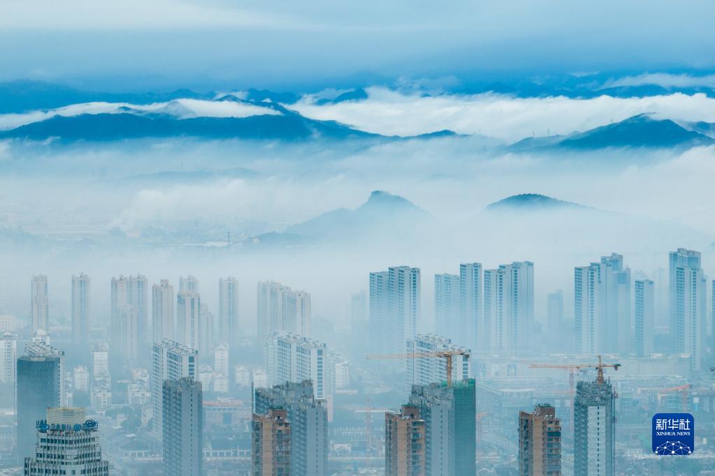 當日,浙江省臺州市椒江區,在暖濕氣流和降雨的共同影響下,霧氣像一層層薄紗將山川、河流、城市籠罩,朦朦朧朧,猶如一幅美麗的生態城市畫卷。