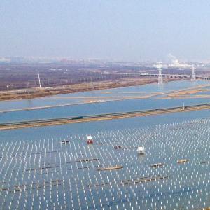 2月7日拍攝的建設中的天津濱海新區龍源海晶鹽光互補項目(無人機照片)。
