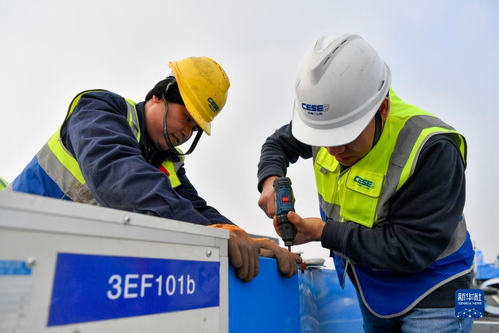 在天津“細胞谷”項目建設現場,建設者在屋頂安裝外部通風管保溫材料(2月10日攝)。