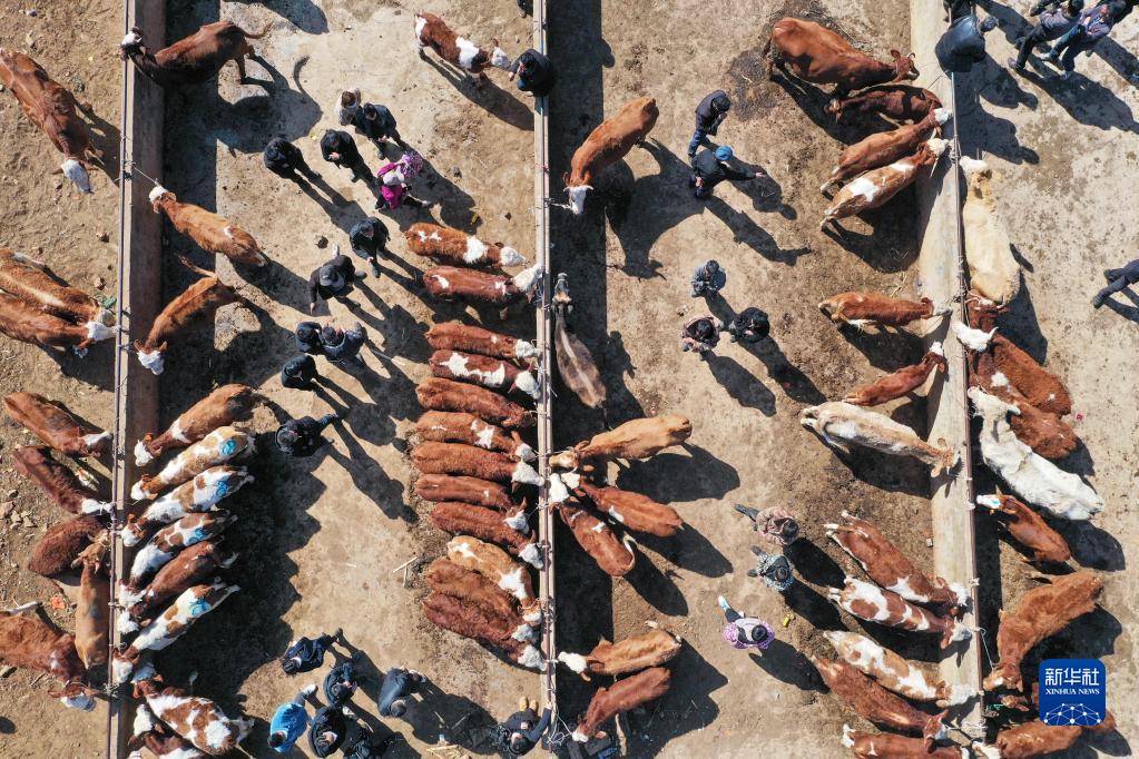 近日,貴州省威寧縣牛市交易迎來旺季。來自云南、四川、廣西及貴州當地的農戶和商販聚集到該縣小海鎮牲畜交易市場,選購和銷售耕牛、能繁母牛等,以便及時投入到春耕備耕生產中。