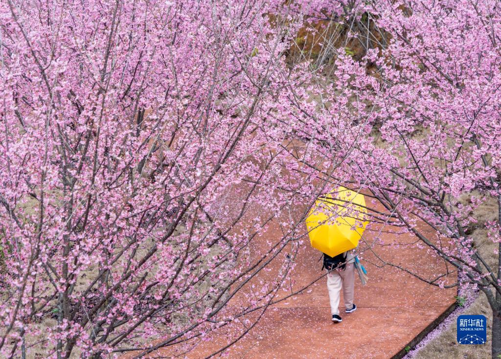 閩南春來早,櫻花始盛開。近日,在福建省南靖土樓景區的紫云山生態園,6萬多株櫻花陸續盛開,吸引眾多游客前來感受漫山的濃濃春意。