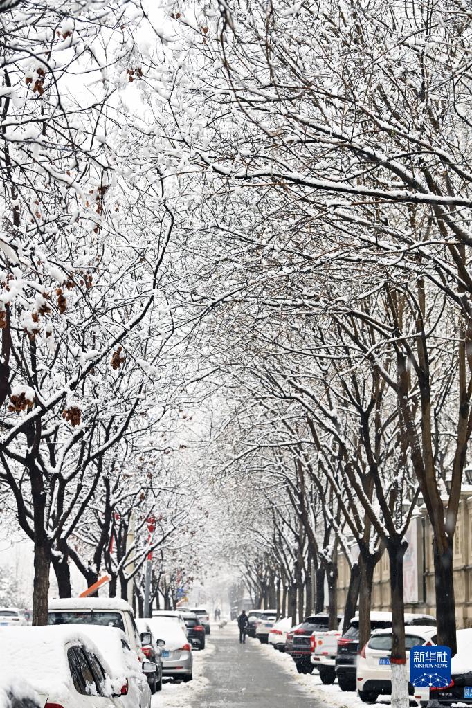 當日,山西省太原市迎來降雪天氣,雪落枝頭,景色迷人。