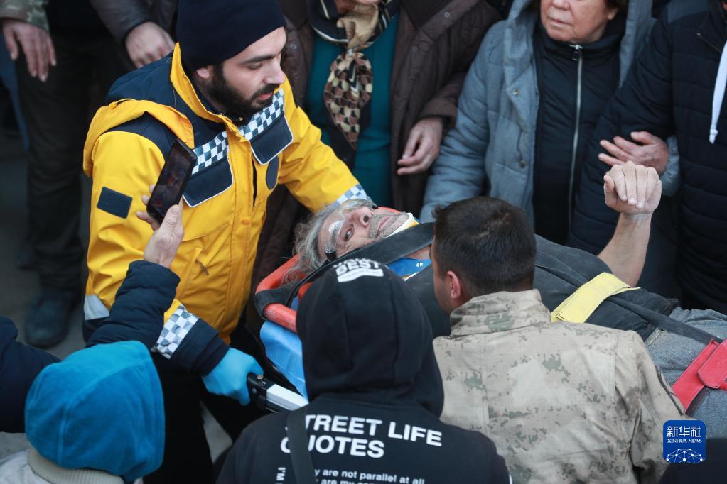 2月10日,救援人員在土耳其哈塔伊省安塔基亞市轉移幸存者。