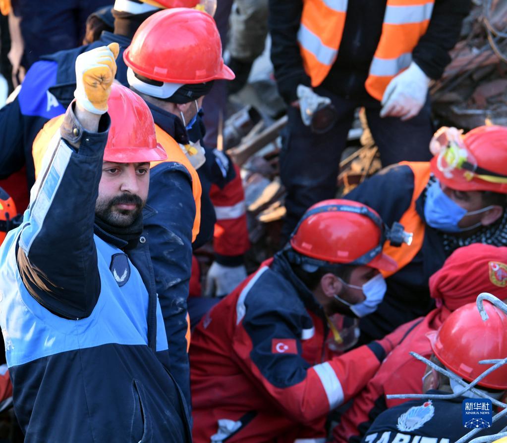 2月11日,救援人員在土耳其哈塔伊省安塔基亞市參與搜救。