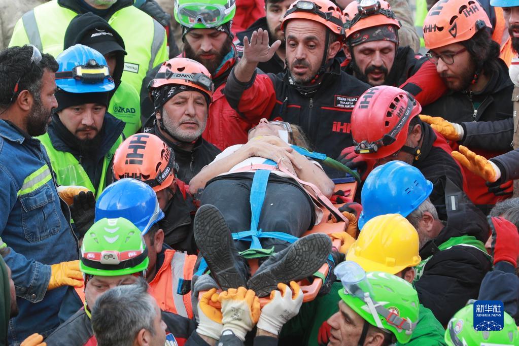 2月10日,救援人員在土耳其哈塔伊省安塔基亞市轉移幸存者。