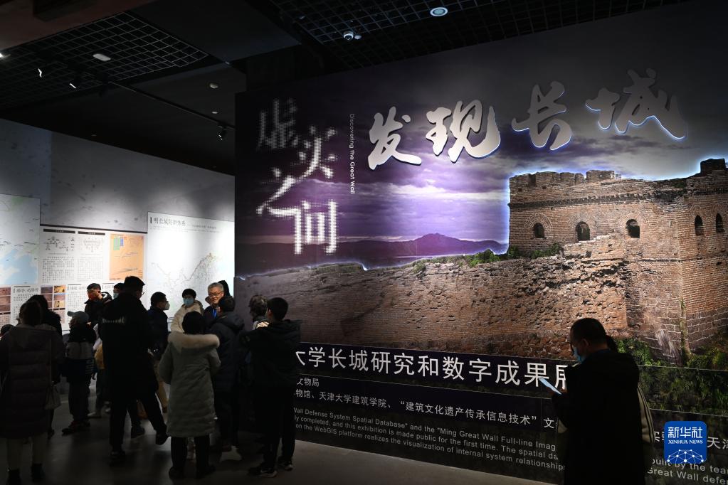 2月12日,觀眾在觀看虛實之間·發現長城——天津大學長城研究和數字成果展。