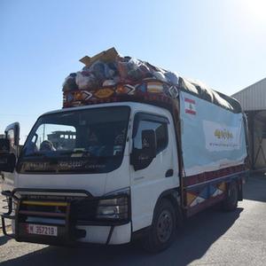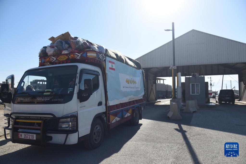 2月11日,裝載救援物資的黎巴嫩車輛準備通過邊境的阿里達口岸進入敘利亞。
