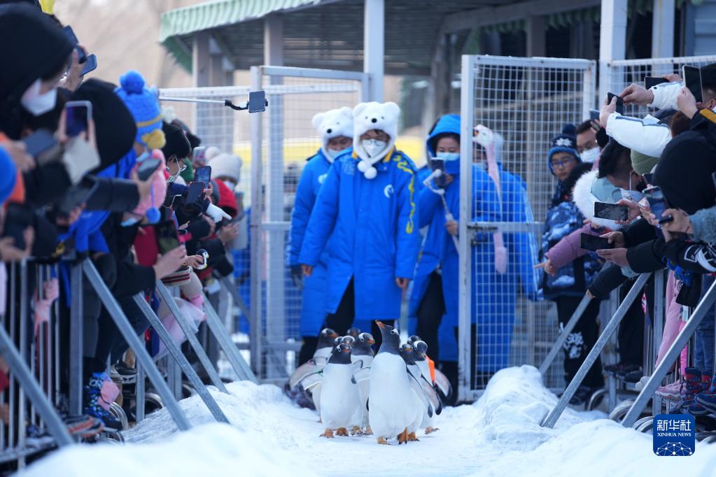 時下,“冰城”哈爾濱市正值冰雪旅游季。哈爾濱極地公園的企鵝每天都會外出“巡游”,吸引許多游客前來觀賞。