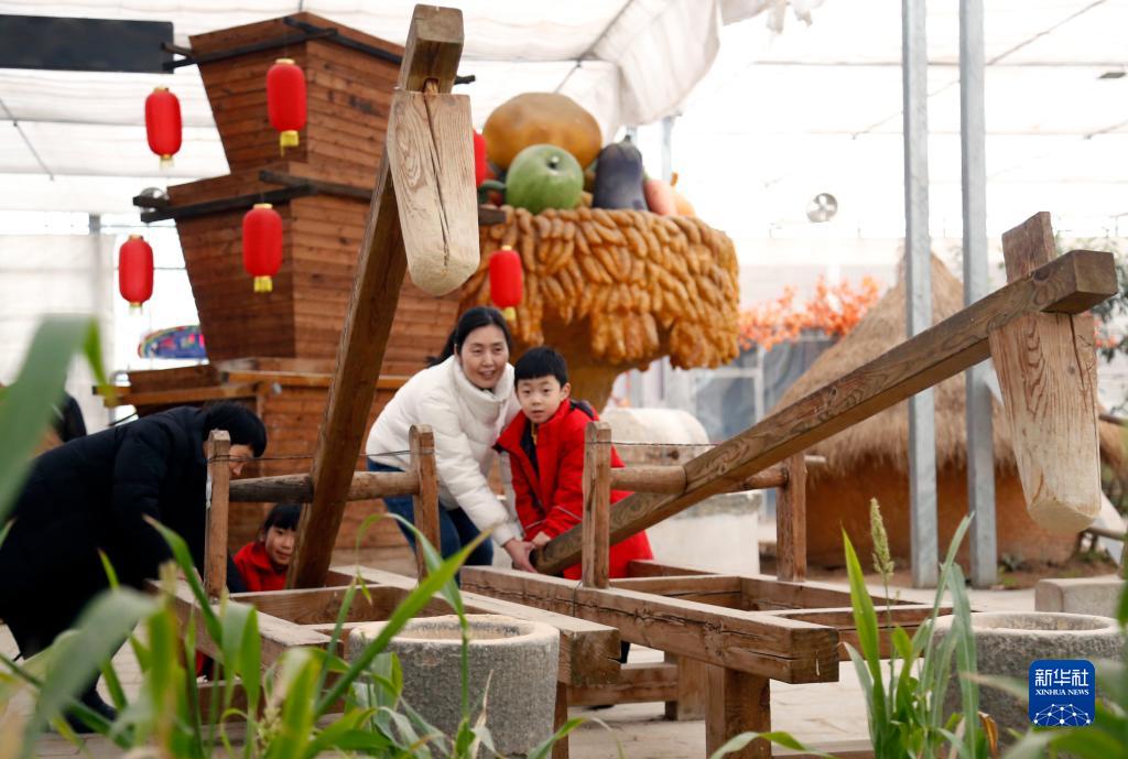 2月12日,游客在南和區賈宋鎮一家農業綜合體體驗農事。