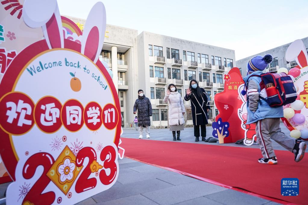 2月13日,在北京小學大興分校亦莊學校,學生有序走進校園。