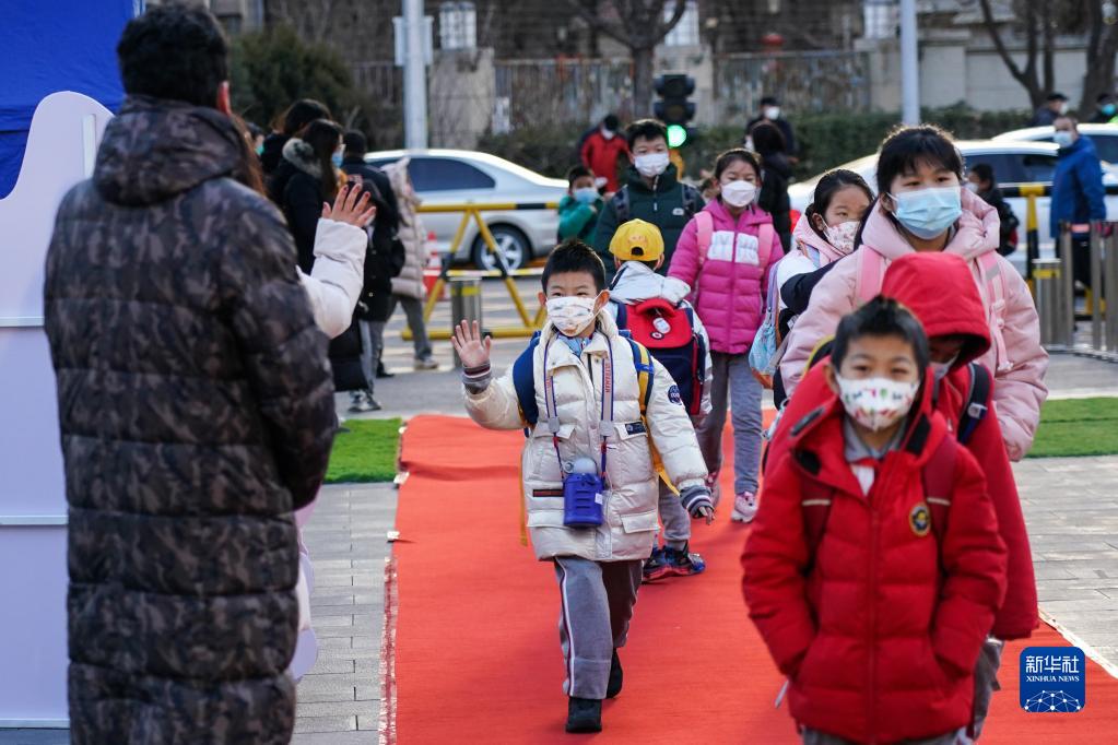 2月13日,在北京小學大興分校亦莊學校 ,學生有序走進校園。